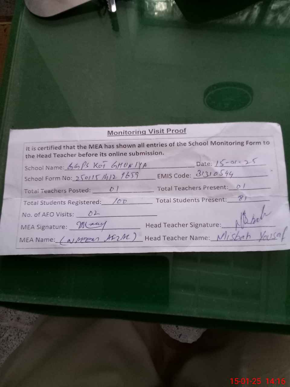 | EMIS Code: 31310544 | Name of School: GGPS KOT GUHINYA MOUZA | |||