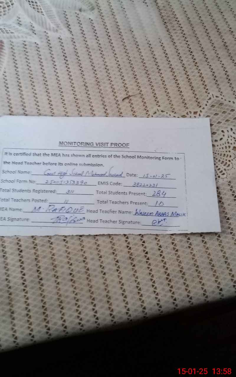 | EMIS Code: 38220231 | Name of School: GHS MAHMOOD SHAHEED | |||