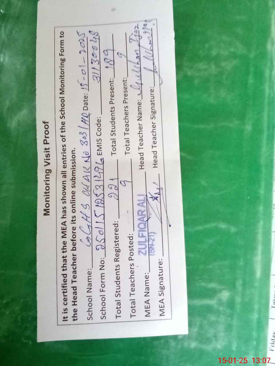 | Name: Gu**** Ij**** Designation: (School Headmaster's/Headmistress's) SSE (Phics) Phone/Cell Number: 03**** |