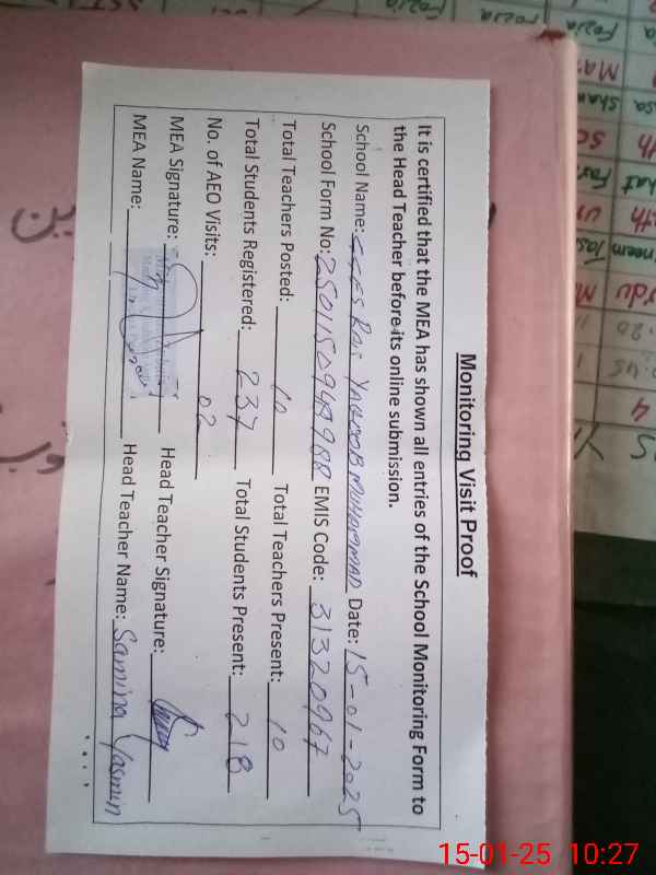 | EMIS Code: 31320967 | Name of School: GGES RAIS YAQOOB MUHAMMAD | |||