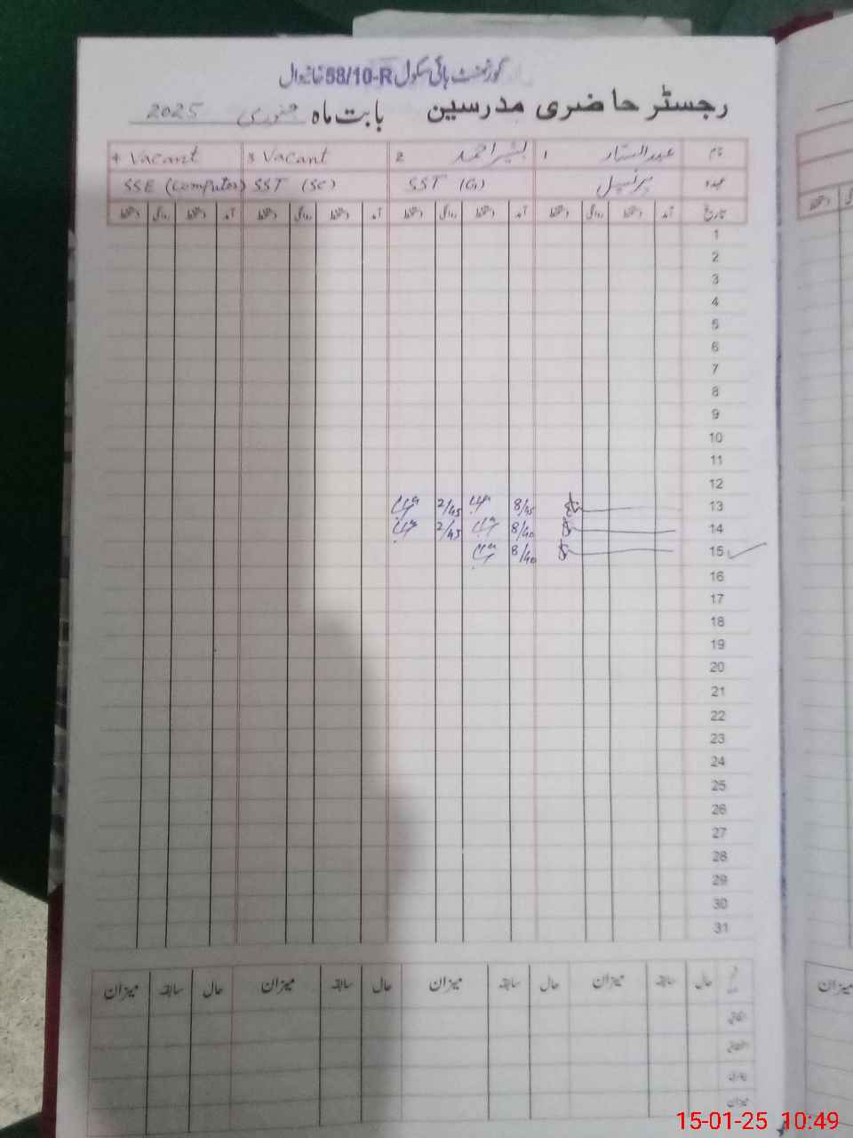 | CNIC | Full Name | Designation | R/C | Absence During Last Calender Month |