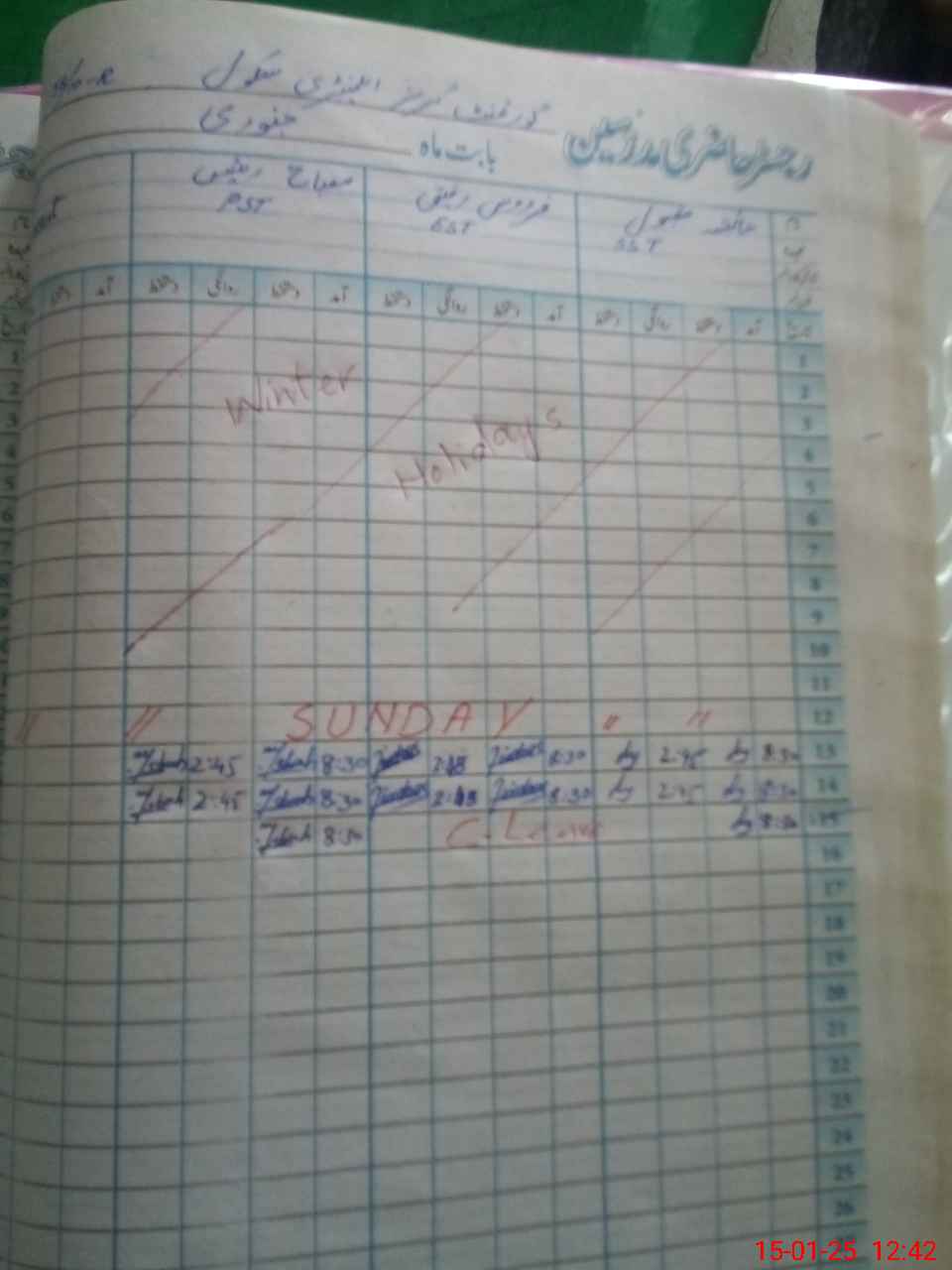 | CNIC | Full Name | Designation | R/C | Absence During Last Calender Month |