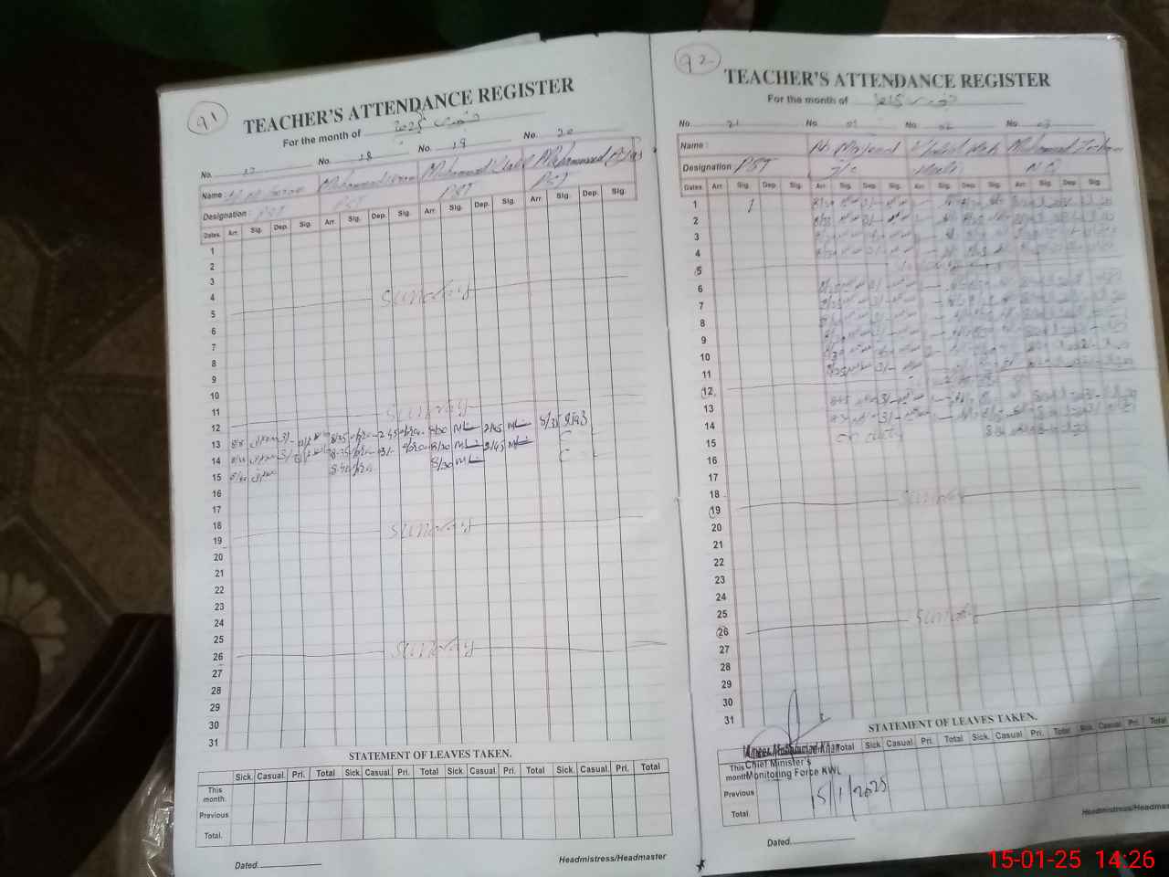 | CNIC | Full Name | Designation | R/C | Absence During Last Calender Month |
