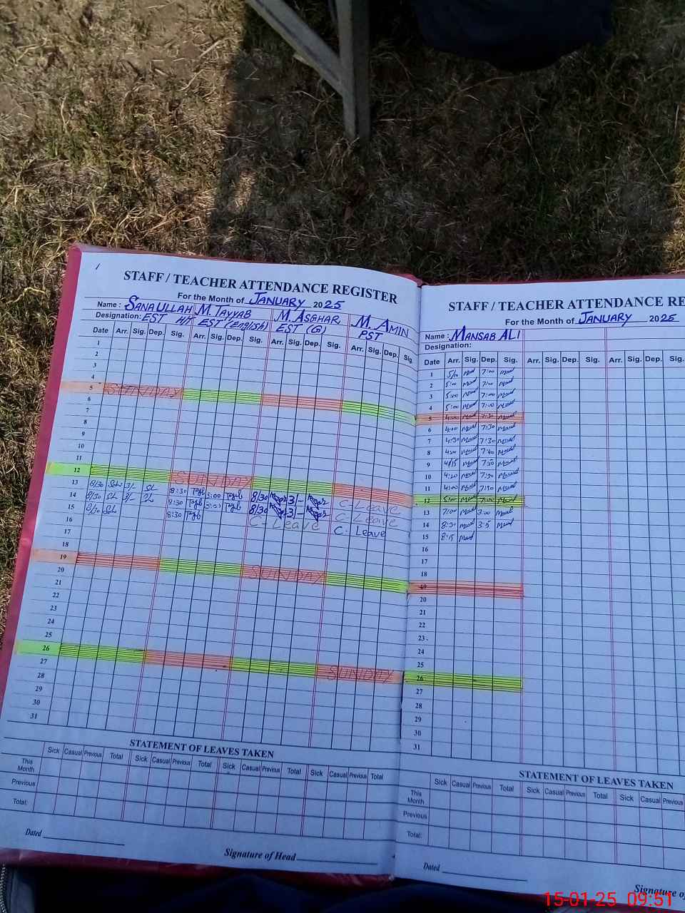 | CNIC | Full Name | Designation | R/C | Absence During Last Calender Month |
