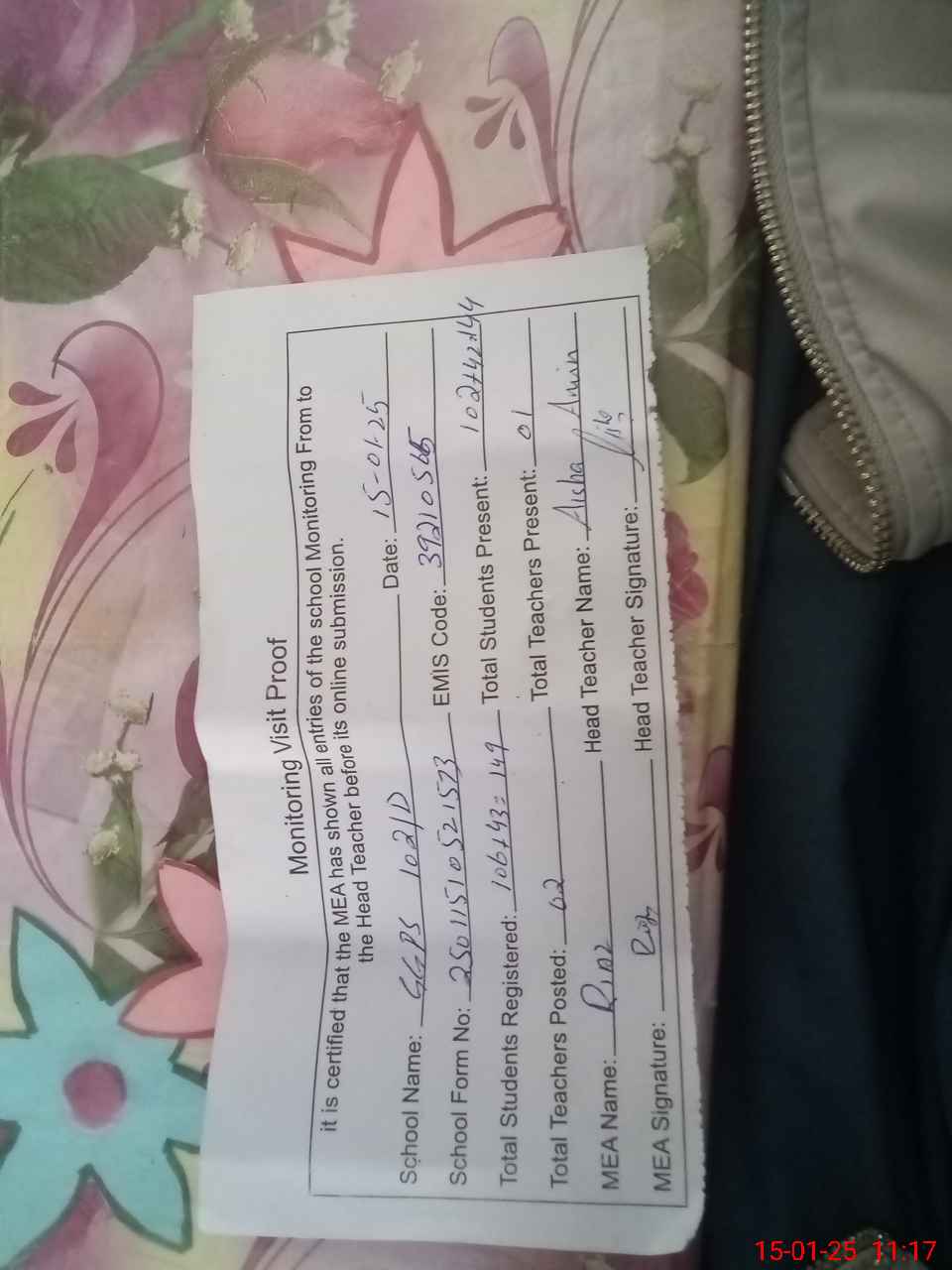 | EMIS Code: 39210565 | Name of School: GGPS 102/D | |||