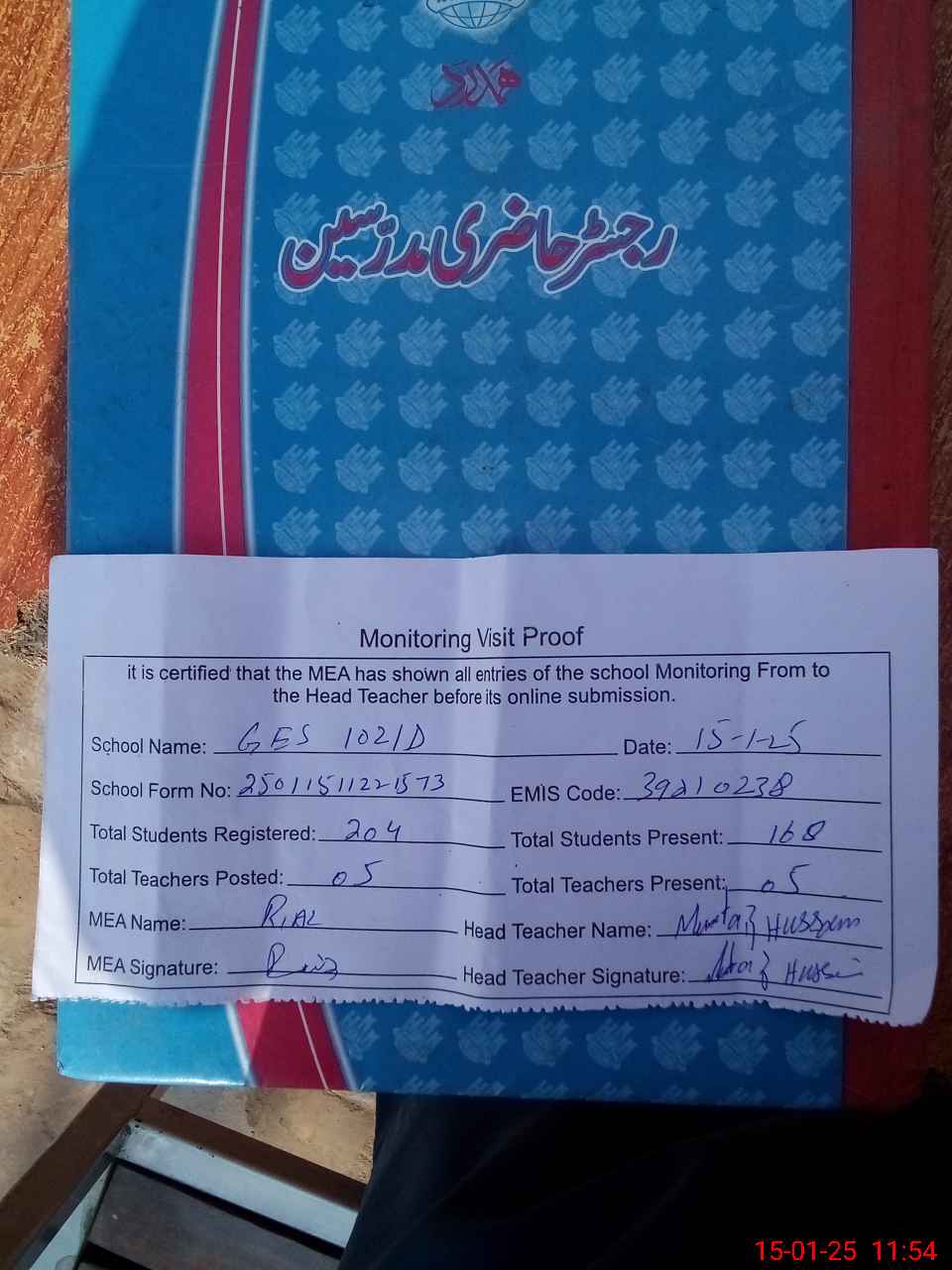 | EMIS Code: 39210238 | Name of School: GES CHAK NO. 102 /D | |||