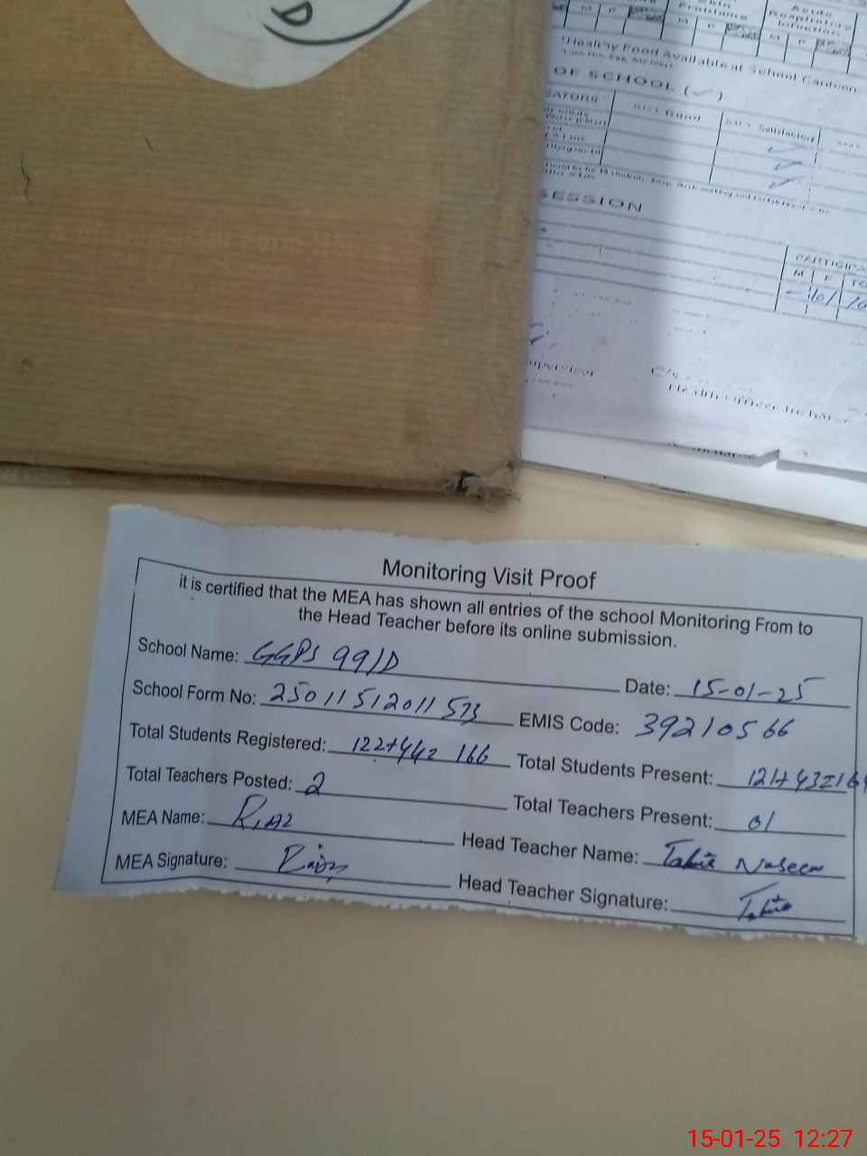 | EMIS Code: 39210566 | Name of School: GGPS 99/D | |||