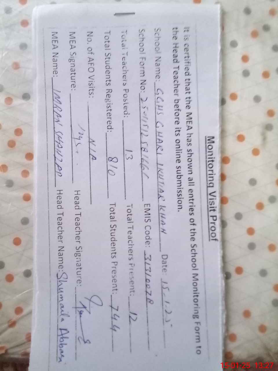 | EMIS Code: 31310078 | Name of School: GGHS GHARHI IKHTIAR KHAN | |||