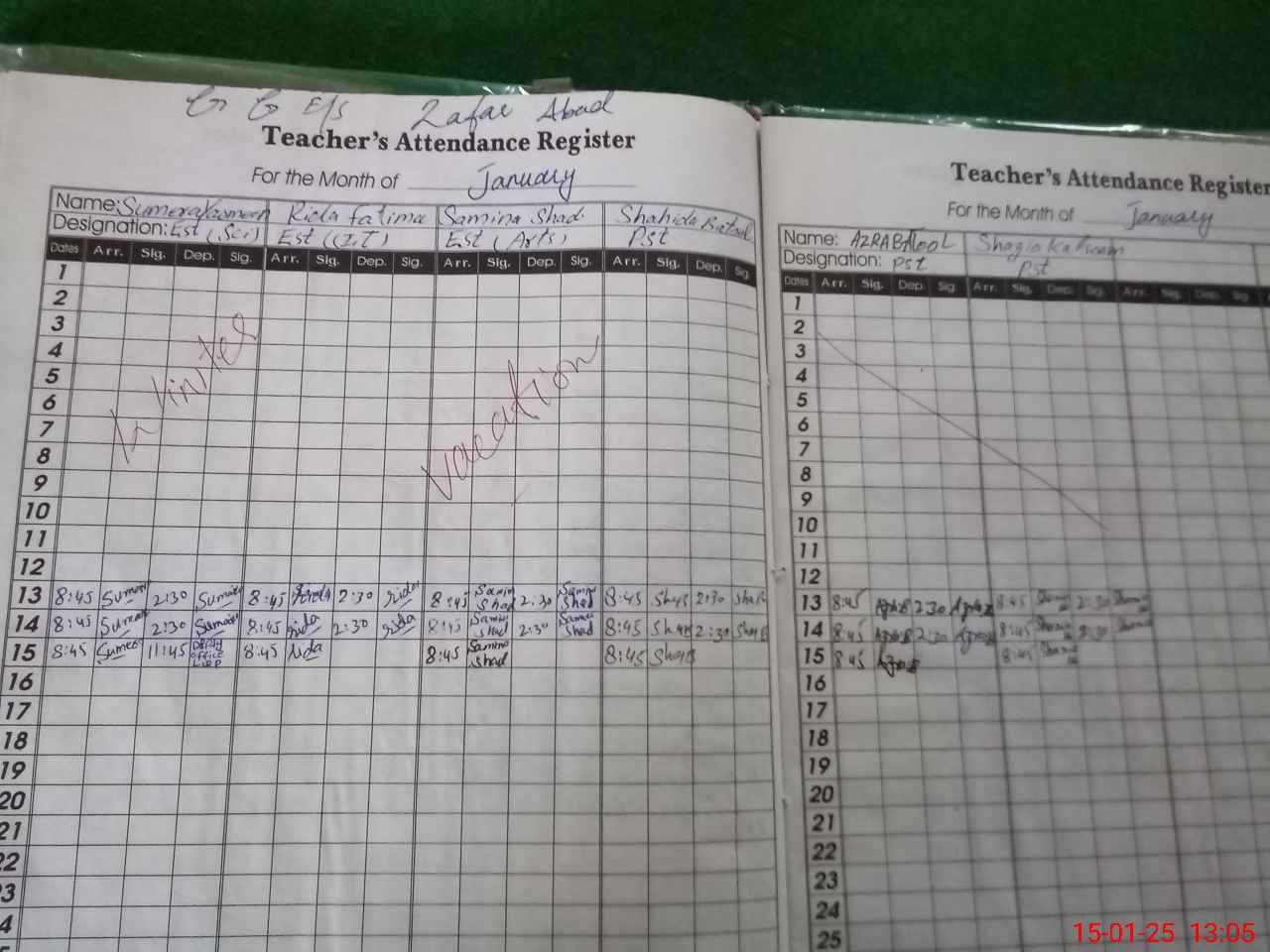 | 31**** | Az**** Bi**** | KHADMA | Regular | 1 | 0 | 0 | 0 | 0 | 0 | 0 | 0 | 1 | Casual |