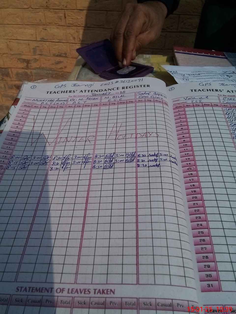 | Name: MU**** AH**** Designation: (School Headmaster's/Headmistress's) PST/PTC/JV Phone/Cell Number: 03**** |