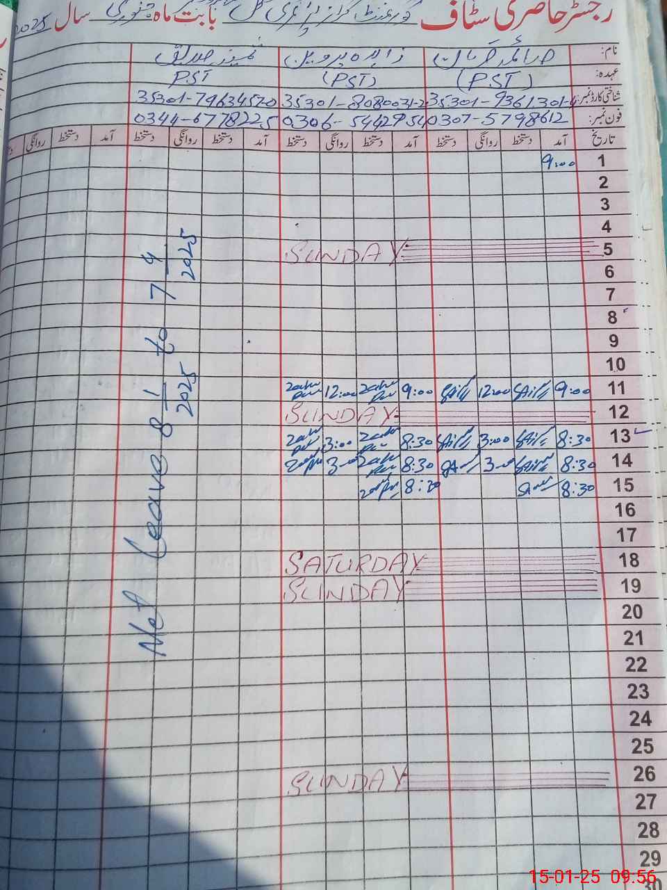 | 35**** | Sa**** Sa**** | PST | Regular | 2 | 0 | 0 | 0 | 0 | 0 | 0 | 0 | 2 | Maternity |