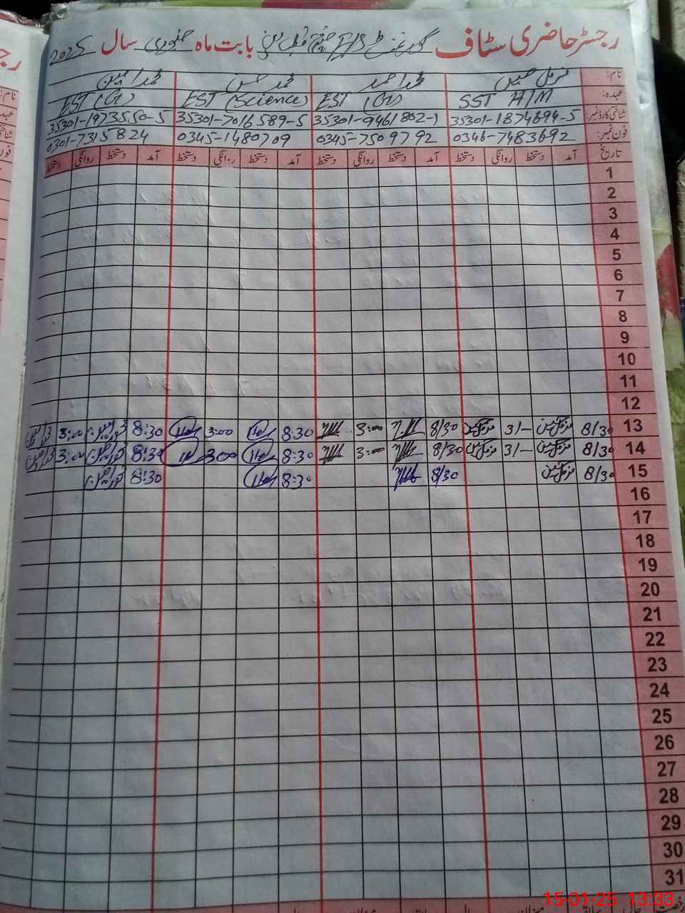 | CNIC | Full Name | Designation | R/C | Absence During Last Calender Month |