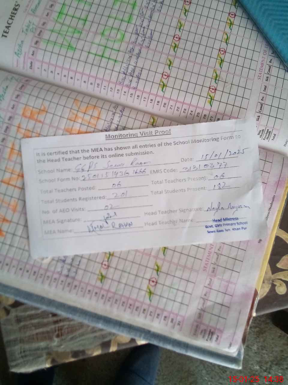 | EMIS Code: 31310377 | Name of School: GGPS SEWA RAM (After Noon) | |||