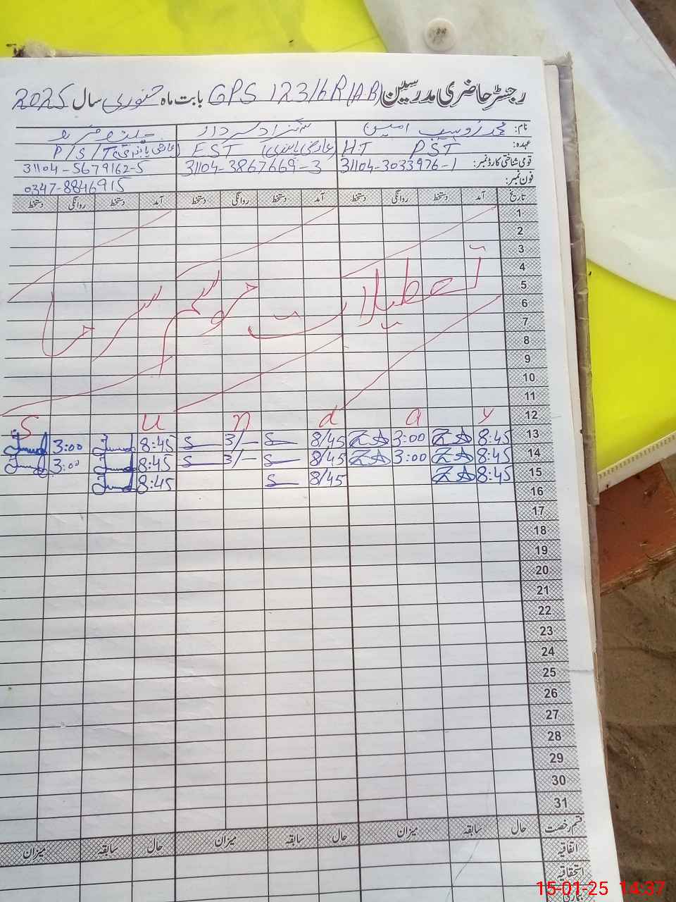 | Name: Mu**** Zo**** Am**** Designation: (School Headmaster's/Headmistress's) PST Phone/Cell Number: 03**** |