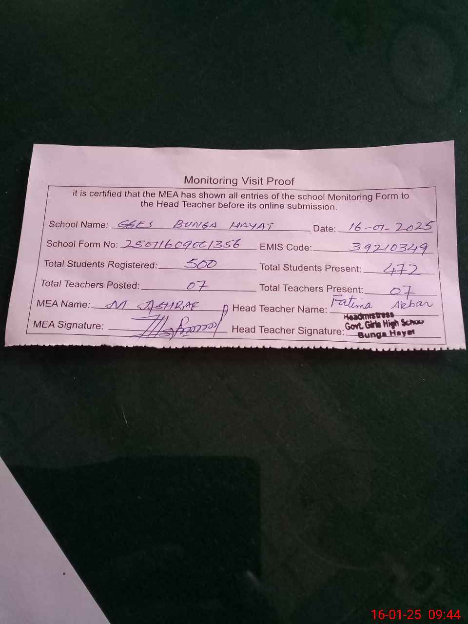 | EMIS Code: 39210349 | Name of School: GGES BUNGA HAYAT | |||