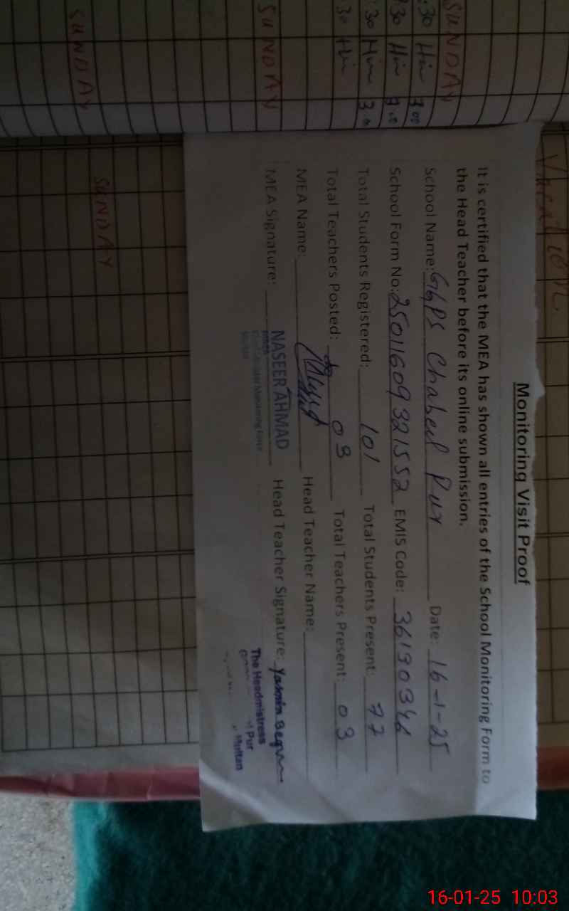 | EMIS Code: 36130346 | Name of School: GGPS CHABEEL PUR SYED WALI KHOI NAWAB PUR ROAD | |||