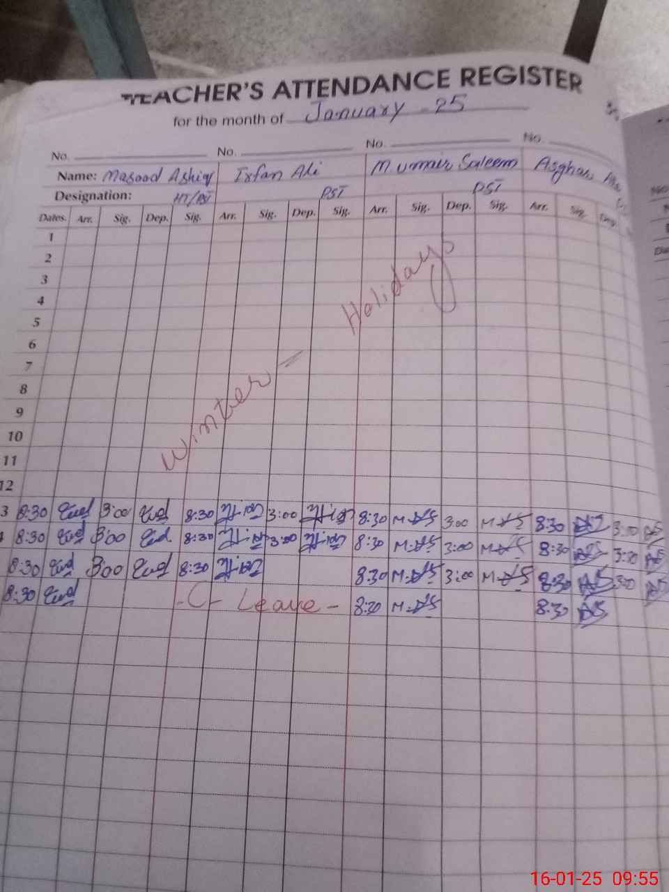 | CNIC | Full Name | Designation | R/C | Absence during last cal. month |
