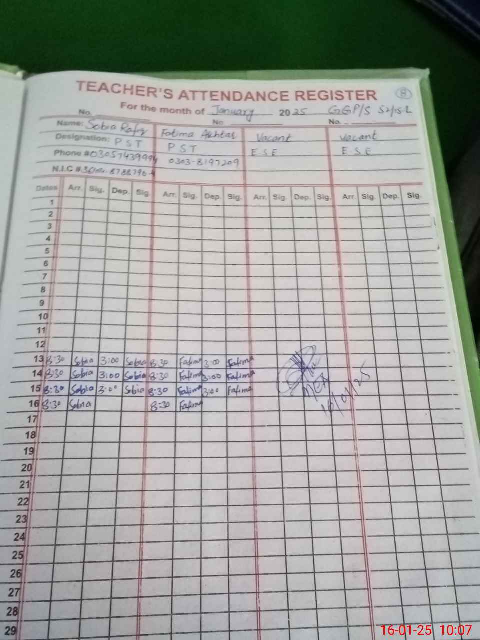 | Name: SO**** RA**** Designation: (School Headmaster's/Headmistress's) PST Phone/Cell Number: 03**** |