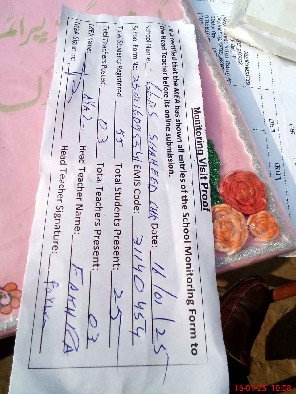 | EMIS Code: 31140454 | Name of School: GGPS CHOWK SHAHEED | |||