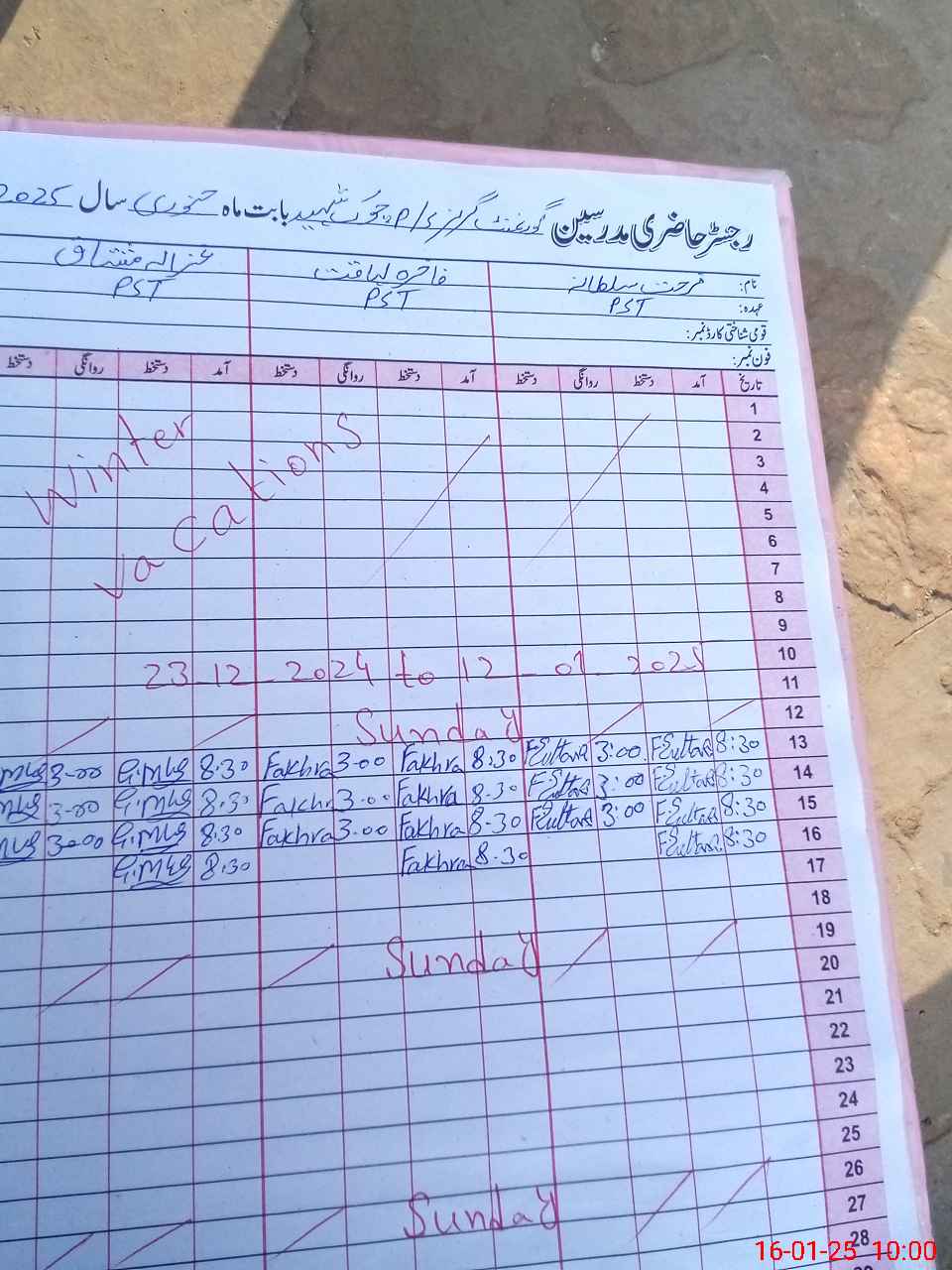 | Name: Fa**** Li**** Designation: (School Headmaster's/Headmistress's) PST Phone/Cell Number: 03**** |
