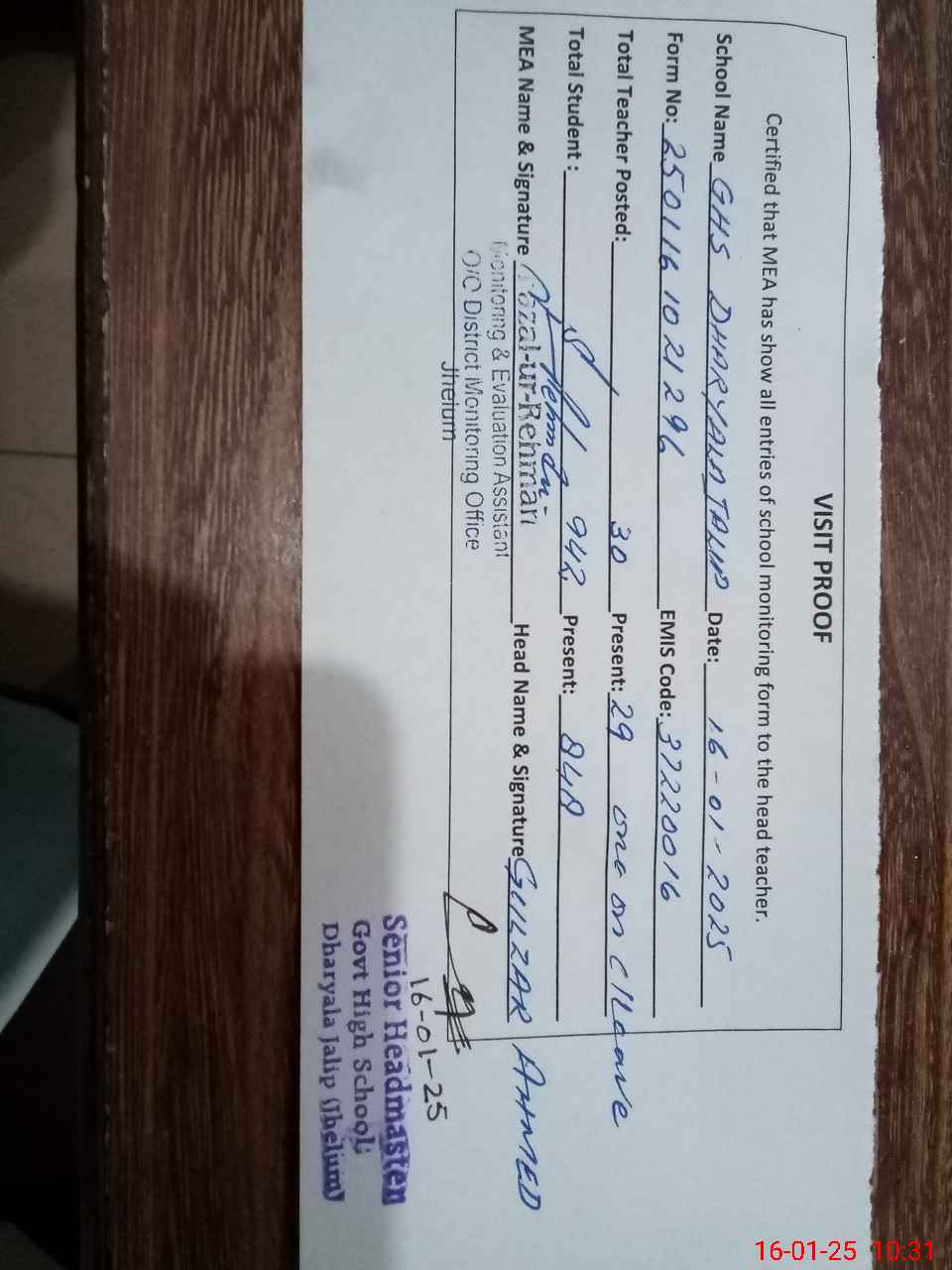 | EMIS Code: 37220016 | Name of School: GHS DHARYALA JALIB | |||