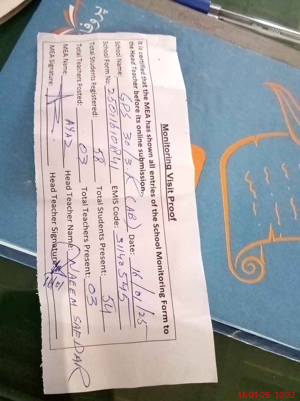 | EMIS Code: 31140545 | Name of School: GPS AZAFI BASTI 30/3-R | |||