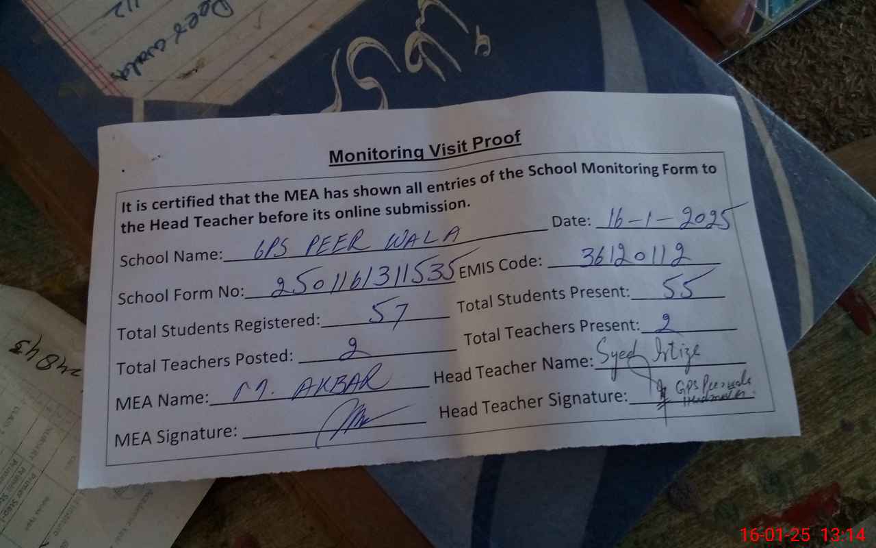 | EMIS Code: 36120112 | Name of School: GPS PEER WALA P/O THATH GHALWAN | |||