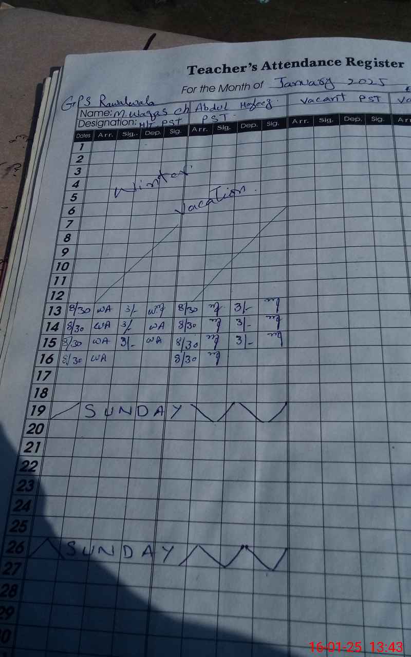 | CNIC | Full Name | Designation | R/C | Absence During Last Calender Month |