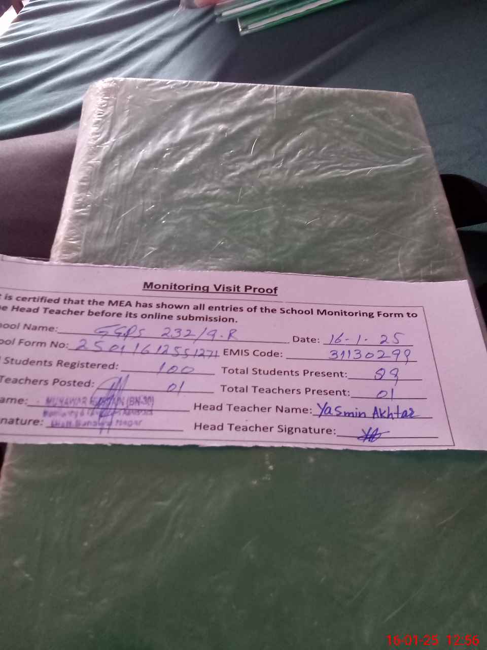 | EMIS Code: 31130299 | Name of School: GGPS CHAK NO 232/9-R S | |||