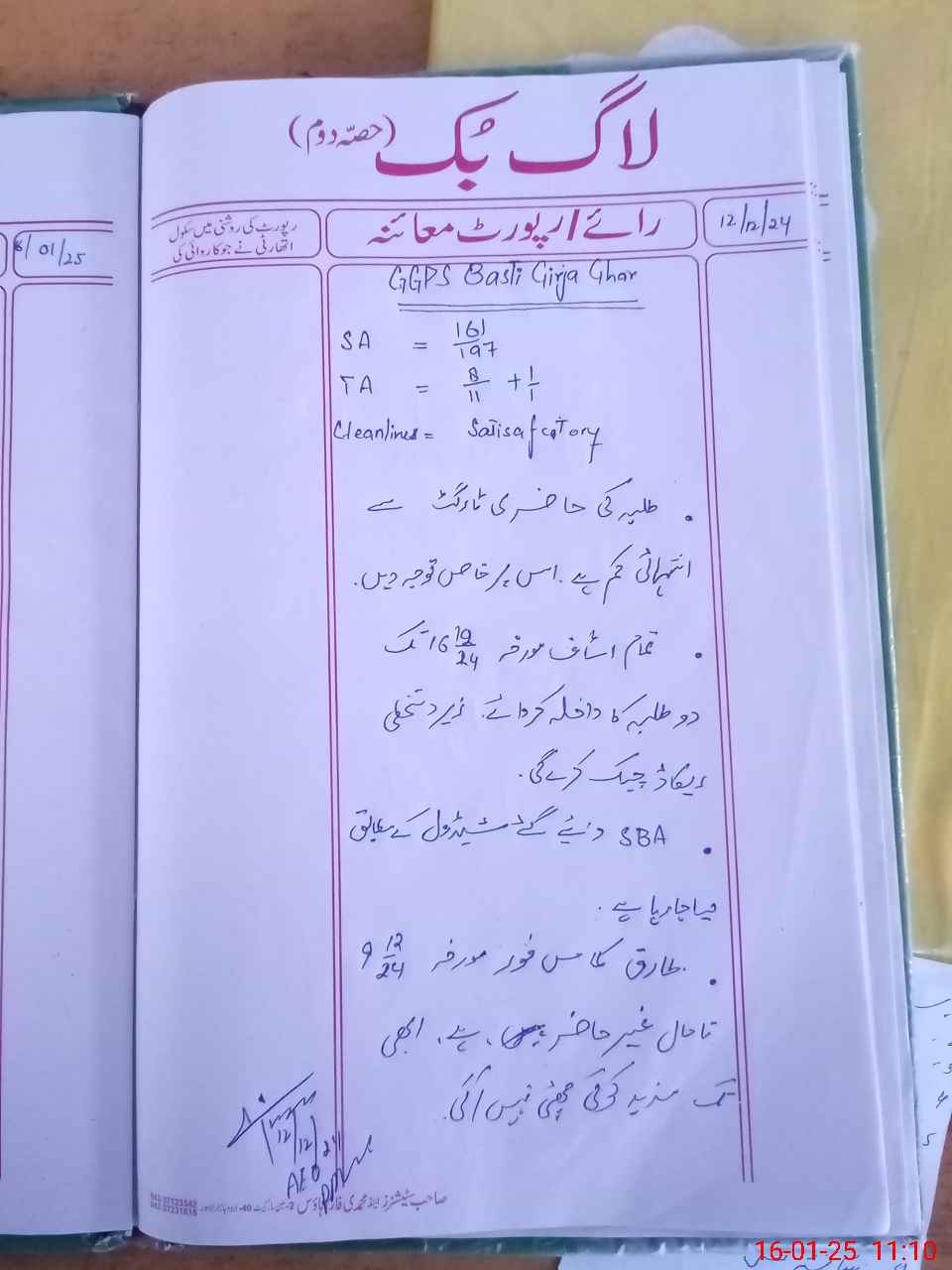 | Monitoring Date: 16-01-2025 | Start Time: 16-01-2025 10:55 AM | End Time: 16-01-2025 12:02 PM | Name of MEA: AM**** UL**** | |