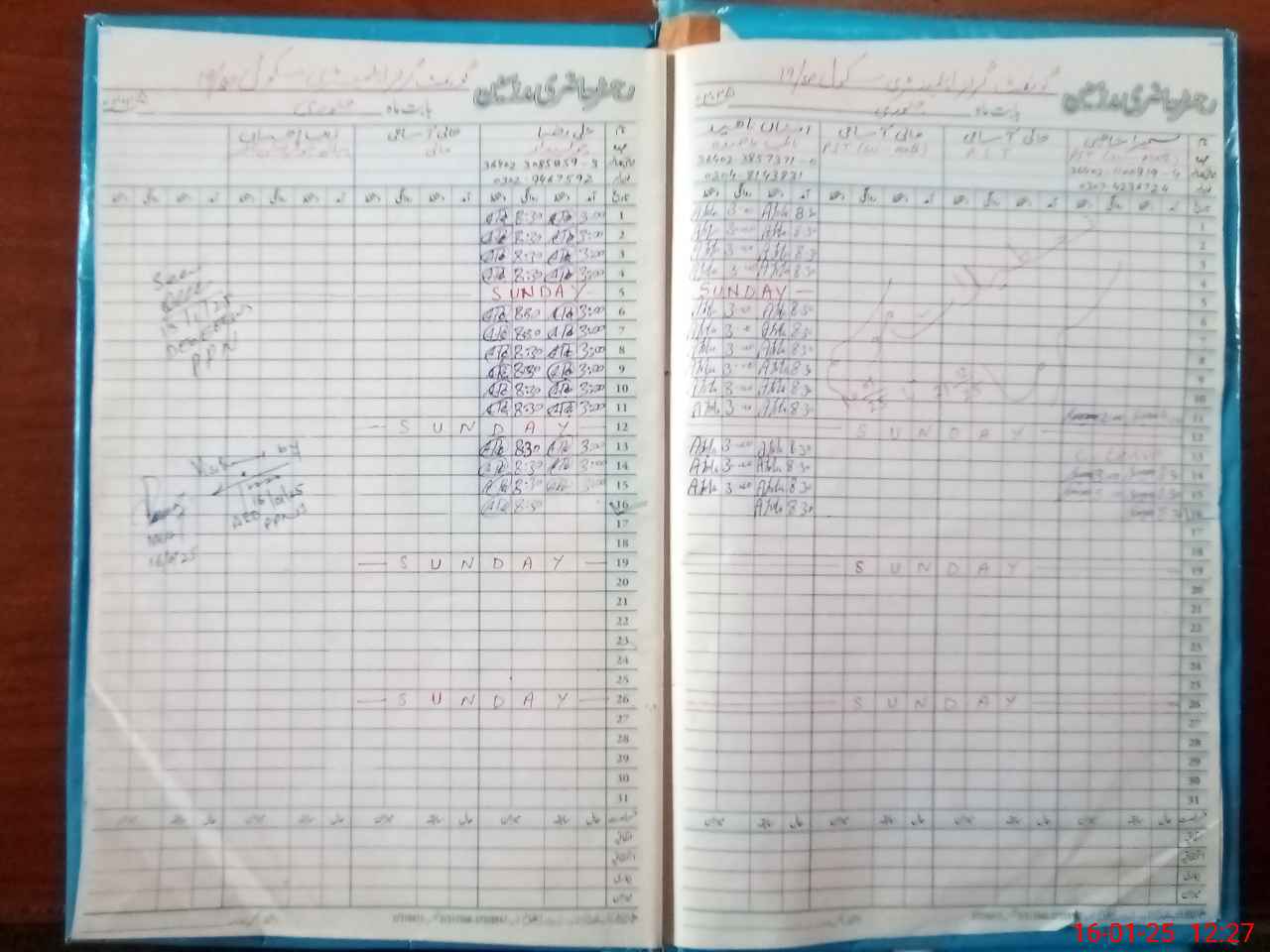 | CNIC | Full Name | Designation | R/C | Absence During Last Calender Month |