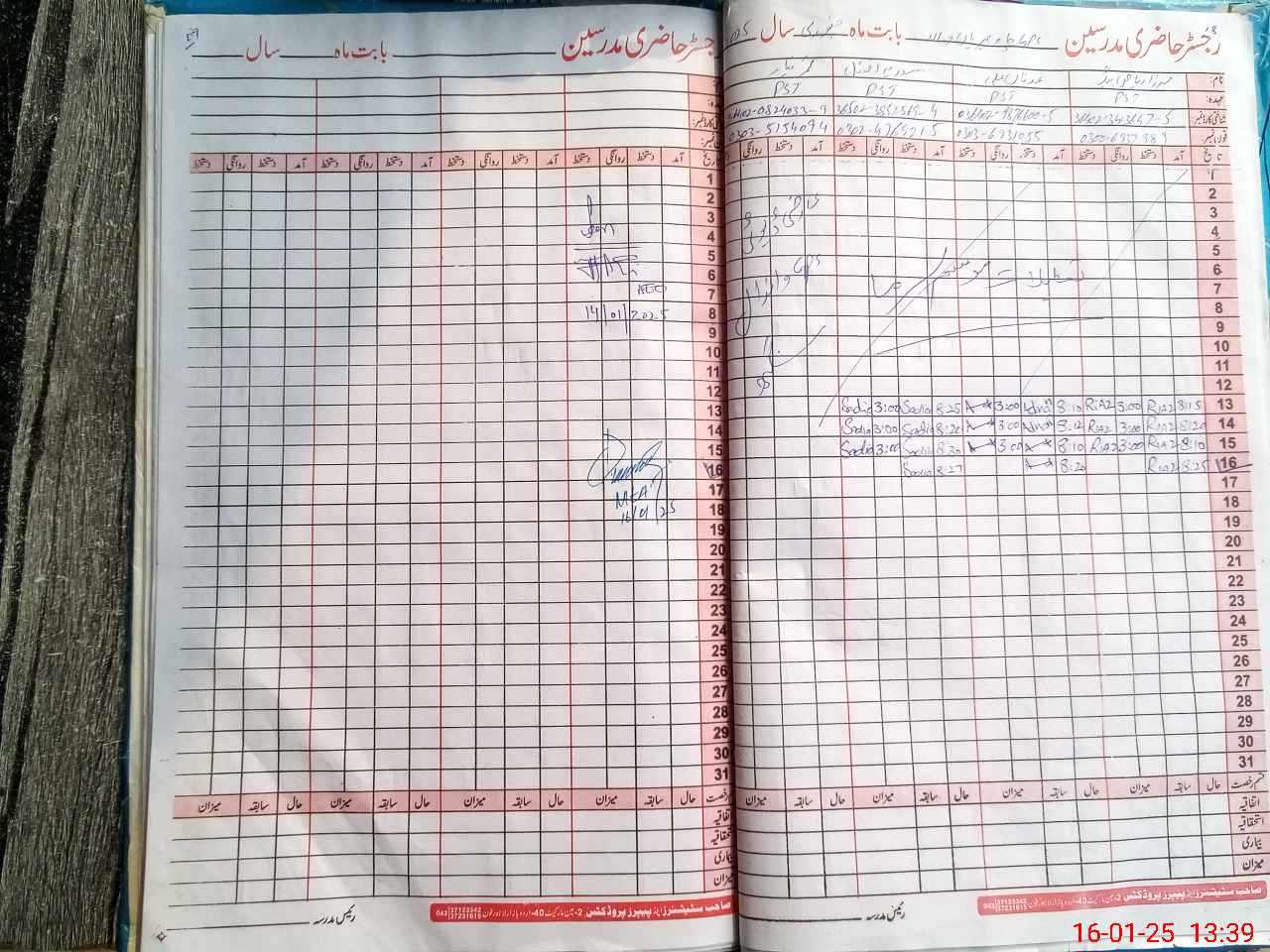 | CNIC | Full Name | Designation | R/C | Absence During Last Calender Month |