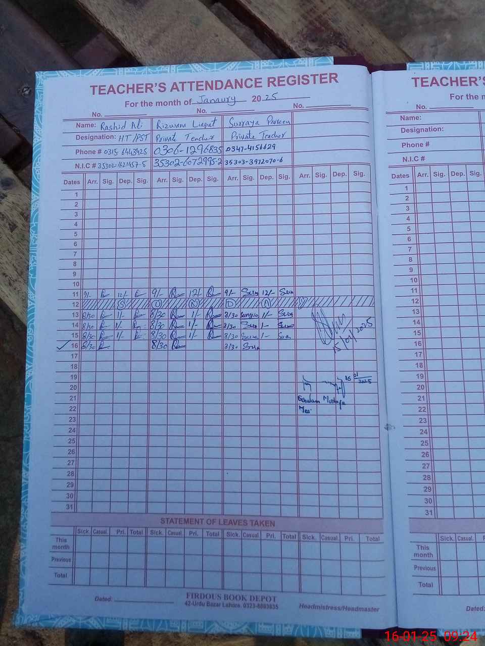 | Name: Ra**** Al**** Designation: (School Headmaster's/Headmistress's) PST Phone/Cell Number: 03**** |