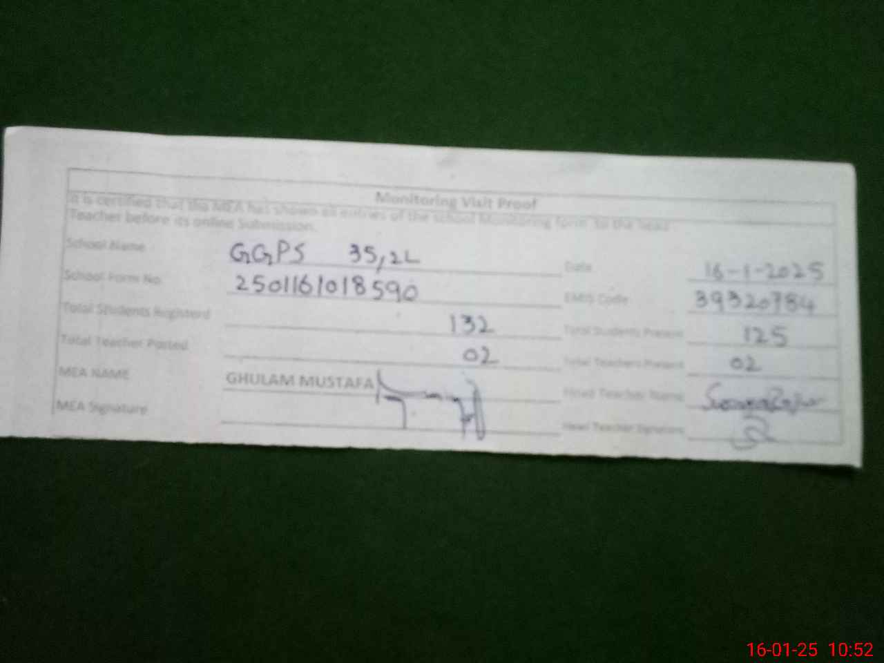 | Certified that this School was Inspected by the Undersigned MEA/DMO Today and the Information Stated Above is as Per Record. | |||||