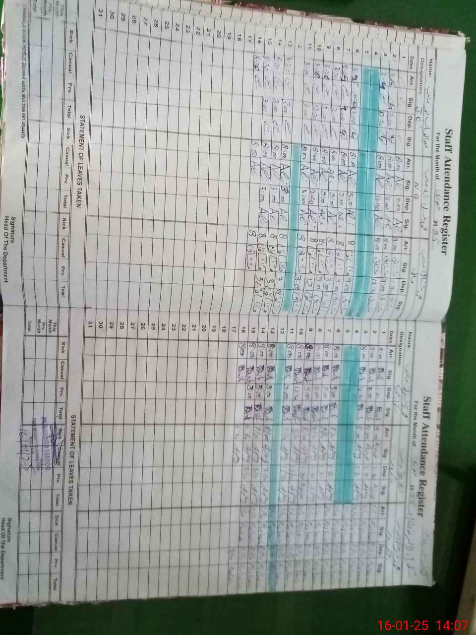 | CNIC | Full Name | Designation | R/C | Absence During Last Calender Month |