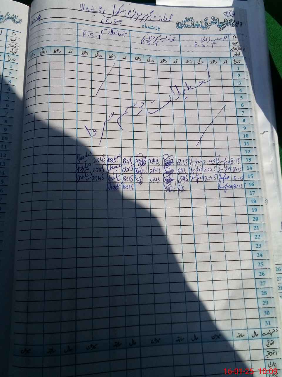 | CNIC | Full Name | Designation | R/C | Absence During Last Calender Month |