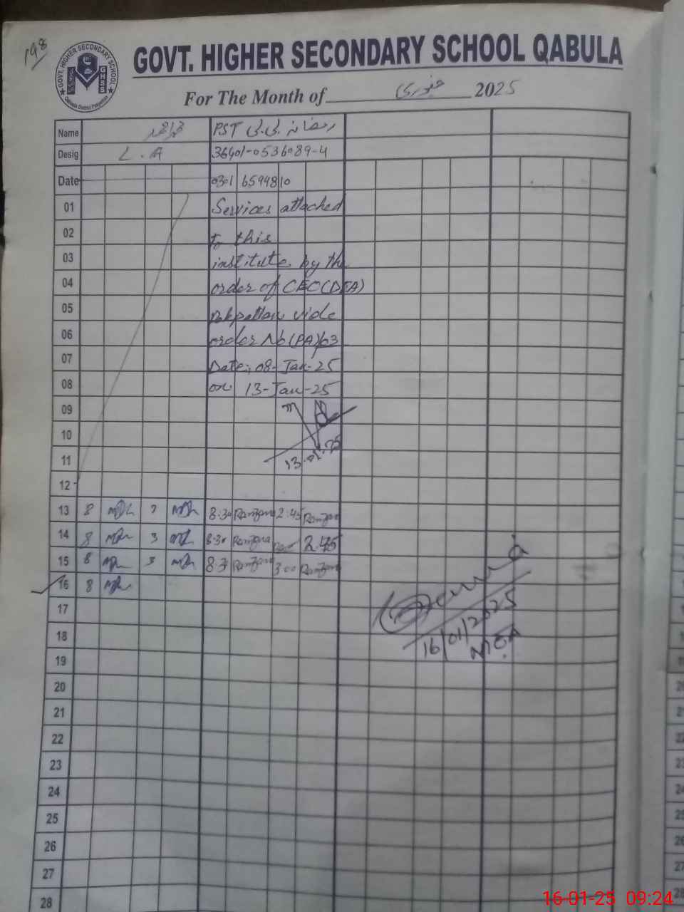 | Name: Ah**** Ri**** Fa**** Designation: (School Headmaster's/Headmistress's) PRINCIPAL Phone/Cell Number: 03**** |