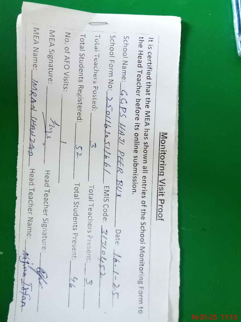 | EMIS Code: 31310452 | Name of School: GGPS HAJI PEER BUKHSH | |||