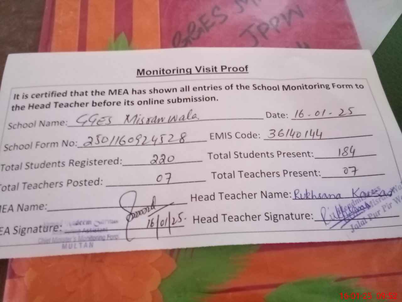 | EMIS Code: 36140144 | Name of School: GGES MISRAN WALA | |||