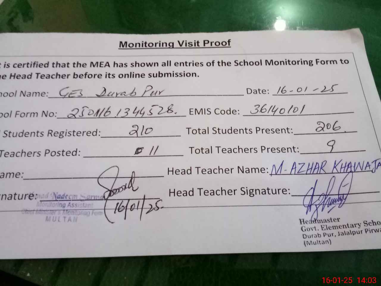 | EMIS Code: 36140101 | Name of School: GES DURAB PUR SHERQI TEHSIL. JALALPUR PIRWALSA | |||