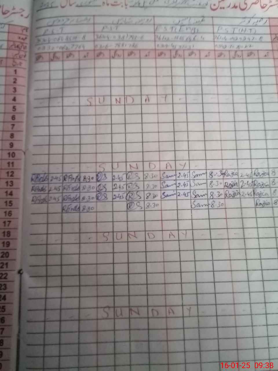 | CNIC | Full Name | Designation | R/C | Absence During Last Calender Month |