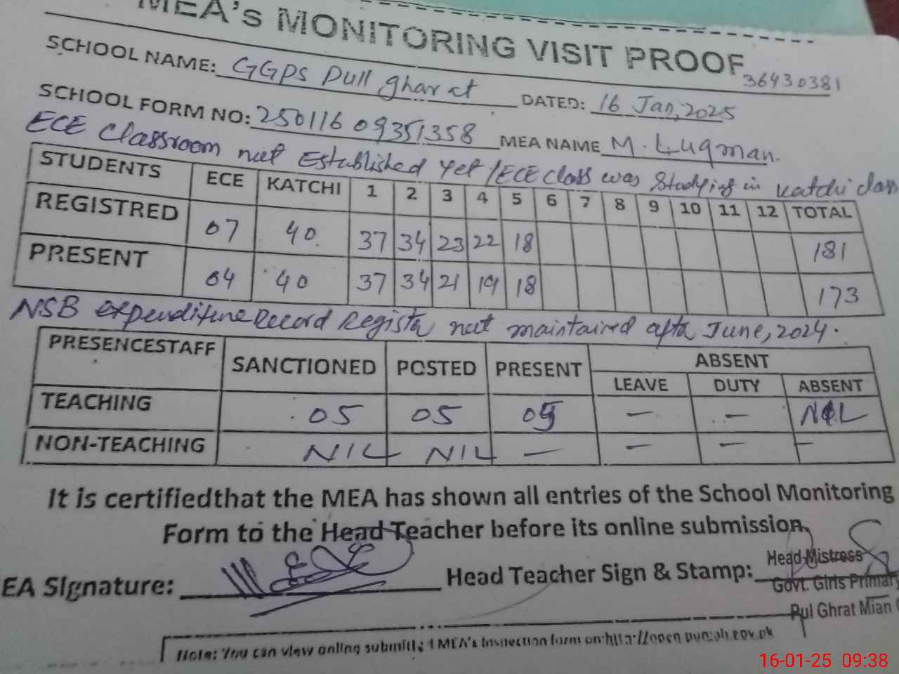 | EMIS Code: 36430381 | Name of School: GGPS PULL GHARAT, TULAMBA | |||