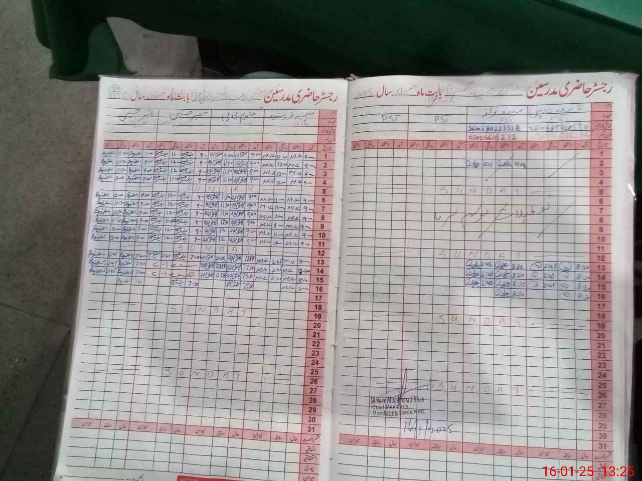 | CNIC | Full Name | Designation | R/C | Absence During Last Calender Month |