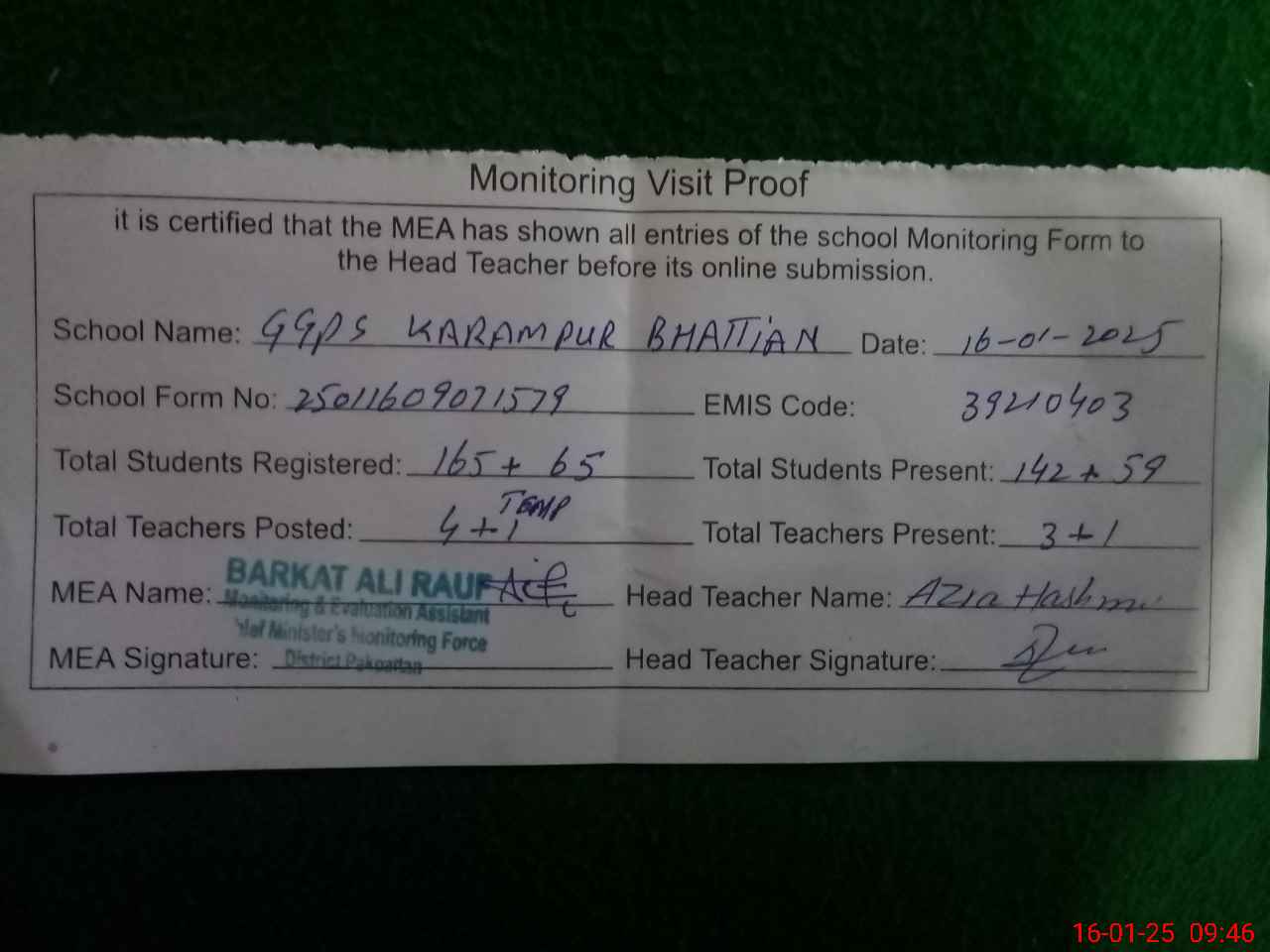 | EMIS Code: 39210403 | Name of School: GGPS KARAM PUR BHATTAIN | |||