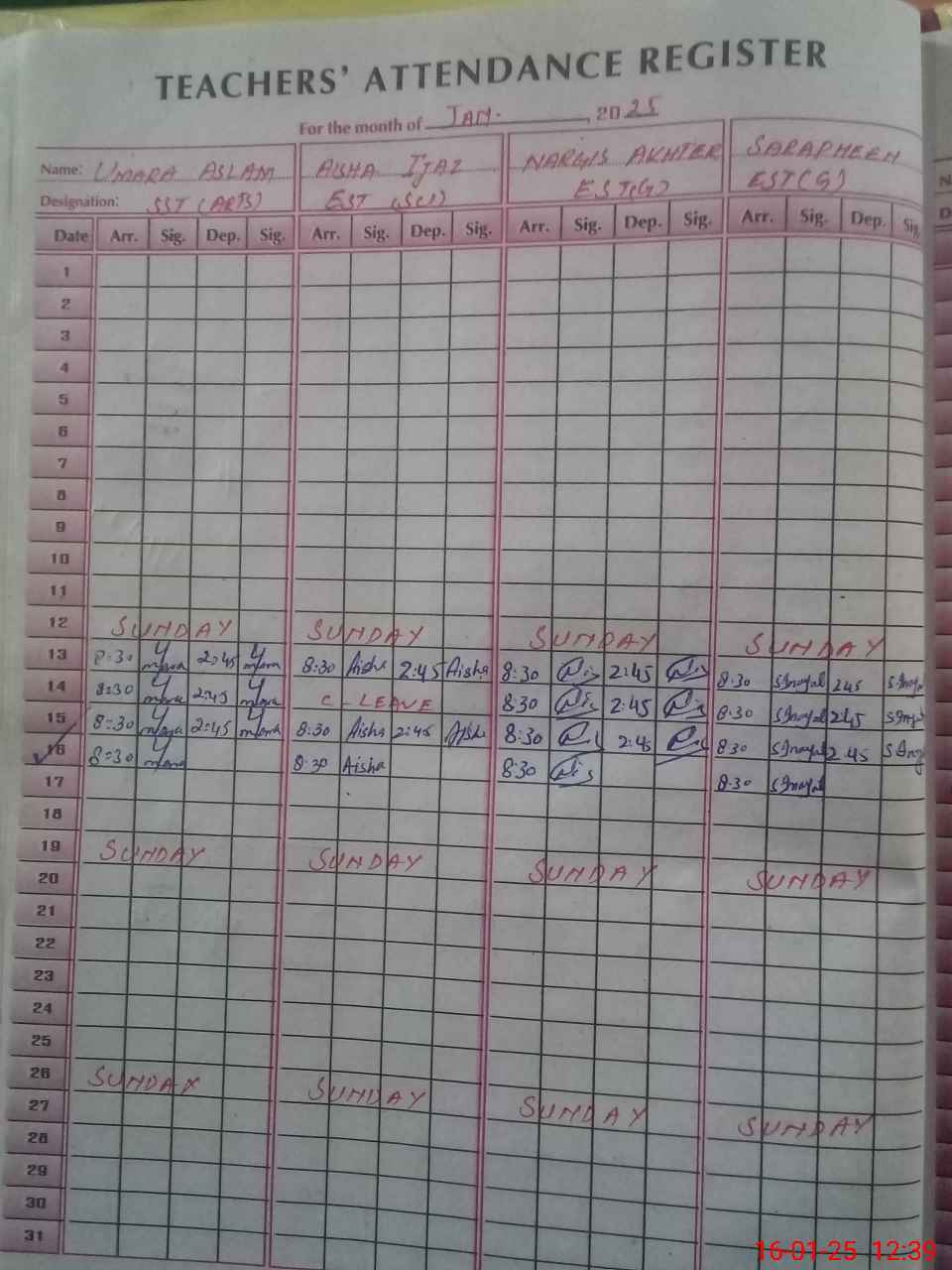 | Remarks (Use Separate Page if Required): During random attendance of 15 students listed students are promoted and left the school | |||||
