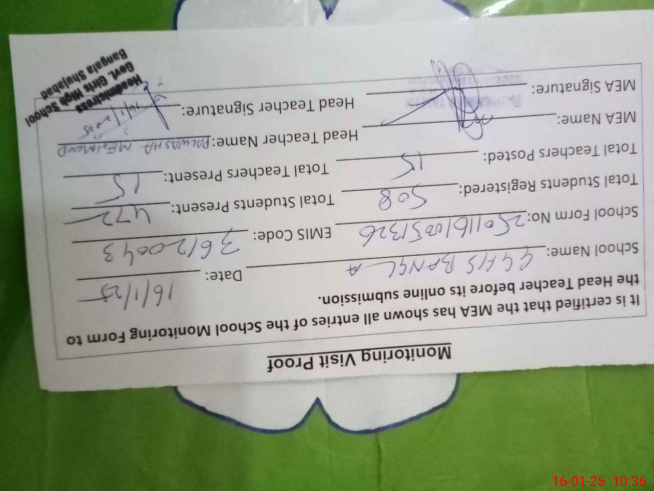 | EMIS Code: 36120043 | Name of School: GGHS BANGALA SHUJABAD | |||