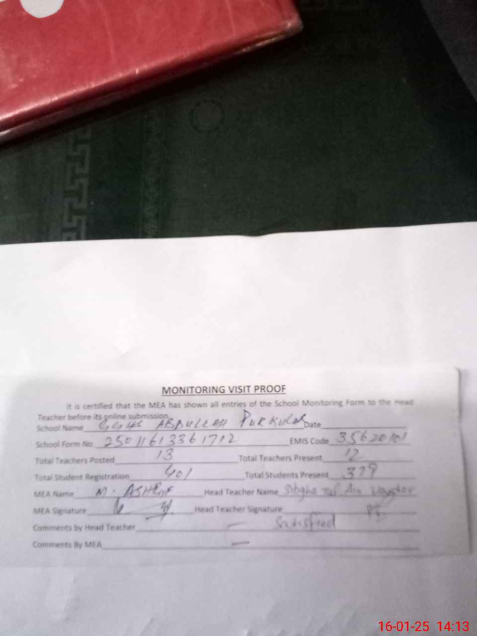 | EMIS Code: 35620101 | Name of School: GGHS ABDULLAH PUR KULAR | |||