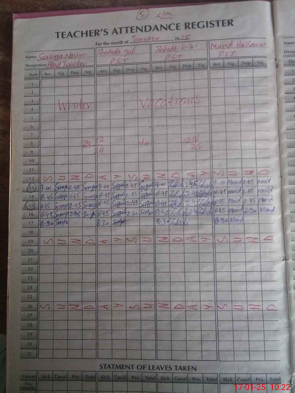 | Name: Su**** Na**** Designation: (School Headmaster's/Headmistress's) PST Phone/Cell Number: 03**** |