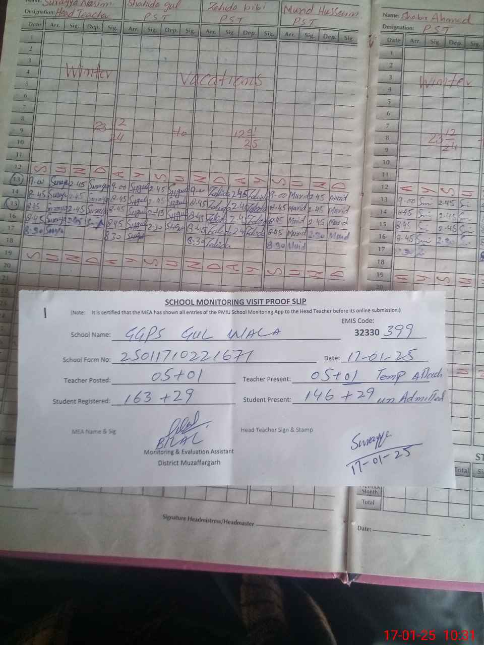 | EMIS Code: 32330399 | Name of School: GGPS GULL WALA | |||
