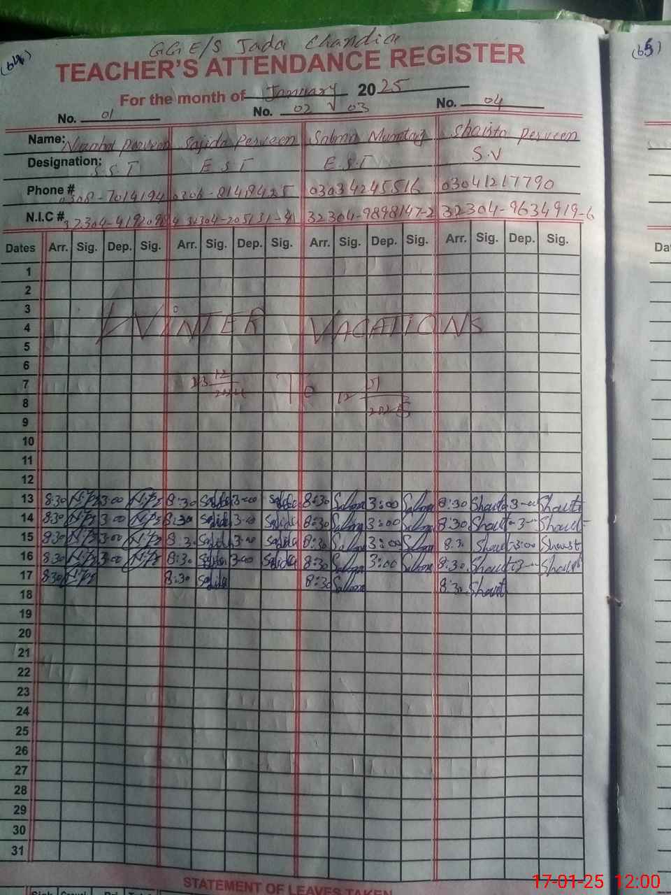 | Name: NU**** PE**** Designation: (School Headmaster's/Headmistress's) SST GEN Phone/Cell Number: 03**** |